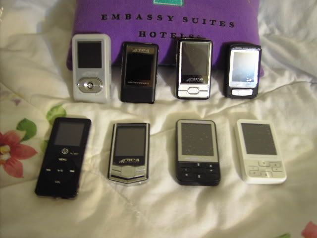 . Here are pictures of all the mp4 players I've collected since last August and the great prices I've managed to get on them including shipping. One of these pictures is on the main page for uploaded pictures so you can see that there too.