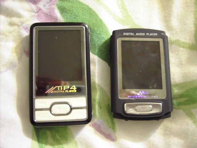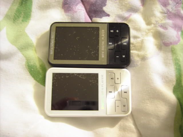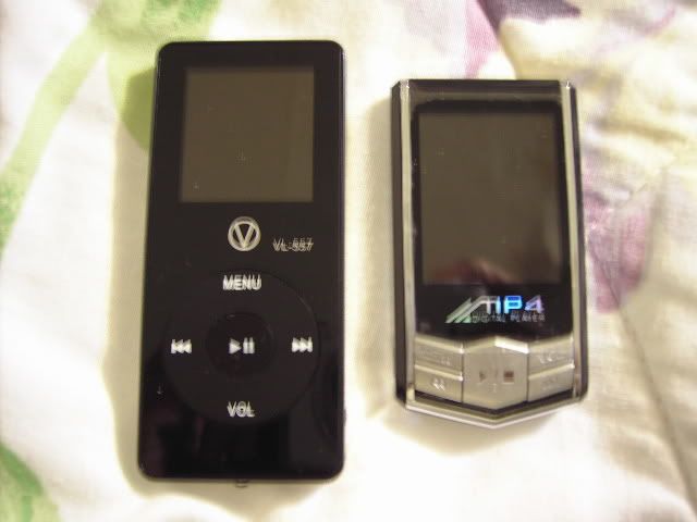 2 1.5" players from tinydealdirect and etop365market, respectively. The one on the left is silver and has double speakers and double 3.5mm earphone jacks. ($43.90) The one on the right is a 2gb slim (got a great deal - nonhacked for only $29.50!)